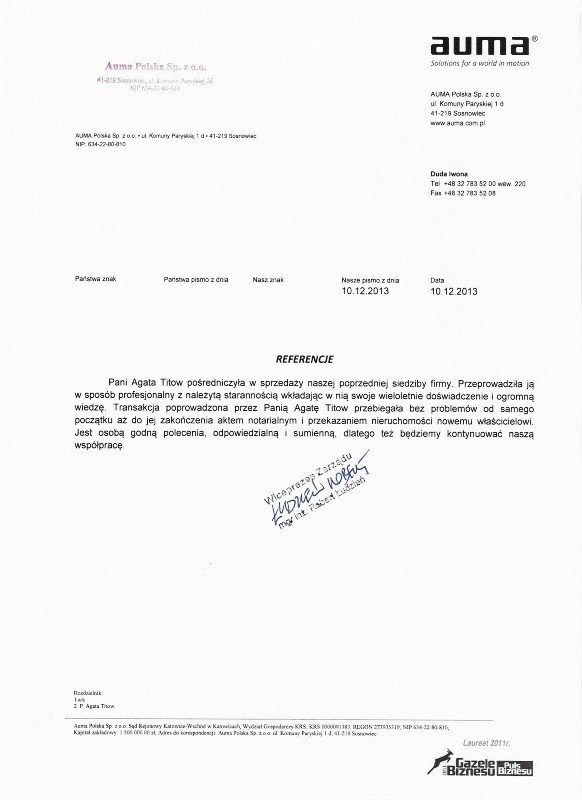 Zamieszczamy uzyskane rekomendacje potwierdzające nasze podejście do klienta.